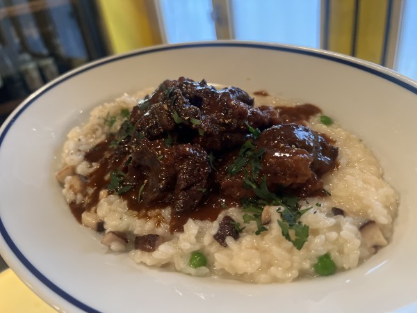 1/10 寒いんでトスカーナの冬の煮込み料理はいかがかな? 【トスカーナ冬の名物!牛スネの煮込み「ペポーゾ」〜付け合わせはリゾット】